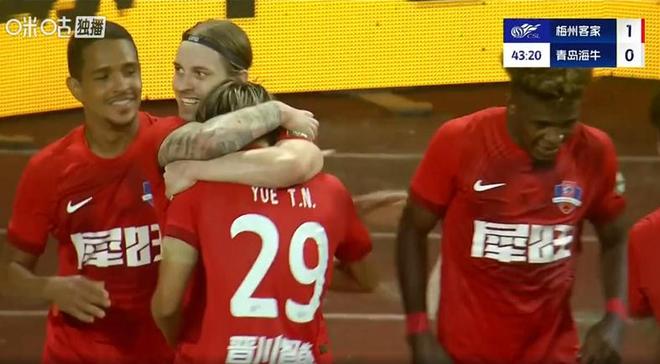 第44分钟,茹子楠左路内切兜出一脚世界波,梅州客家主场1-0领先!这个进球太漂亮了!