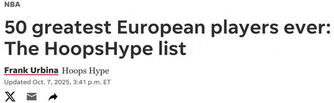 湖人新核东契奇第6名!在季前赛火热进行中,NBA新赛季正式到来之际,美媒《hoopshype》按照生涯成就评选出NBA欧洲球员TOP50名单,其中现役即战力第一人约基奇屈居第3,诺天王强势夺魁。第五名:帕克(法国)荣誉:4冠、1FMVP、3次二阵、6次全明星、一次欧锦赛金牌帕克的投射范围与防守都不够顶尖,但凭借顶级的速度、变向与抛投能力,让帕克在NBA与国际赛场均取得不俗的成就,也获得“法国跑车”美誉。尤其是为马刺队效力的后期,随着邓肯的老去,帕克一度长时间扮演进攻核心角色,也率队拿下冠军,荣膺FMVP。但因为其大部分时间定位并非大当家,导致帕克拥有足够豪华的荣誉却没能获得更高的排名。第四名:大加索尔(西班牙)荣誉:2冠、4次最佳阵容、4次全明星、2次奥运银牌、一枚世界杯金牌、3枚欧锦赛金牌大加索尔在夺冠期间同样是二当家角色,这在一定程度上影响了他的排名,但相比于帕克,大加索尔在国际赛场是绝对大当家。更是率领西班牙黄金一代多次登顶欧洲,还在奥运会中将美国梦之队逼至绝境,凭借国际赛场上更出色的成就让大加索尔力压帕克获得第四名。第三名:约基奇(塞尔维亚)荣誉:一冠、一FMVP、3次MVP、5次一阵、7次全明星、1次奥运银牌、1次奥运铜牌作为现役即战力第一人,约基奇之所以在仅拿到一冠的情况下排在第三名,主要是因为他是掘金队夺冠期间绝对大当家。如果按照他过去5年在场上展现出的绝对统治力,以及3次赢得MVP,同时在国际赛场又多次在奥运会拿下奖牌,他完全有资格获得更高的排名。好在约基奇的生涯还在继续,并且掘金队终于完成了一个全面补强的休赛期,如果新赛季约基奇可以再次率队夺冠,他将一口气跃升至榜首。第二名:字母哥(希腊)荣誉:1冠、1FMVP、2次MVP、7次一阵、9次全明星、1次DPOY、4次防守一阵、一次杯赛冠军、一次杯赛MVP、一枚欧锦赛铜牌字母哥也作为绝对核心拿到一个冠军,荣膺FMVP,但在MVP竞争方面不敌约基奇,后者已经拿下3个MVP,之所以获得更高的排名,主要是字母哥的攻防更加均衡。尤其是防守端,约基奇并不是一名顶尖的防守者,字母哥则是稳定的DPOY竞争者,更是多次入选最佳防守一阵,也拿到过DPOY。第一名:诺维茨基(德国)奖项:一冠、1次FMVP、1次MVP、12次最佳阵容、14次全明星、一次世界杯铜牌、1次欧锦赛银牌诺维茨基同样手握一冠、1FMVP,并且在MVP数量上处于劣势,之所以力压字母哥与约基奇,主要是他拥有足够漫长的生涯,并且长久保持比赛统治力,积累了足够多的全明星与最佳阵容荣誉。随着字母哥与约基奇生涯的进行,未来诺天王极有可能丢掉榜首的位置,但凭借击败热火三巨头这一座含金量十足的冠军奖杯,诺天王未来很长一段时间都将稳居前三位置。其余排名如下6-10名:东契奇、戈贝尔、小加索尔、彼得洛维奇、佩贾;11-20名:萨博尼斯、施伦普夫、迪瓦茨、库科奇、武切维奇、诺阿、小萨、基里连科、斯米茨、德拉季奇;21-30名:大Z、卢比奥、波神、拉贾、加里纳利、巴图姆、施罗德、马丘利奥尼斯、瓦兰、斯特鲁斯;31-40名:奥库、博迪罗加、卡佩拉、卡尔德隆、纳瓦罗、迪奥、马尔卡宁、博扬、富尼耶、达尼洛维奇;41-50名:戈塔特、加利斯、文班亚马、博格丹、阿奴诺比、纳特、申京、斯帕诺里斯、小瓦格纳、祖巴茨。