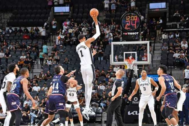 不过,就算是双方实力差别很大,马刺队方面,也是认真对待这场比赛,很多主力球员都是悉数出场,比如,NBA顶级球星文班亚马就首发出场,一共打了16分23秒。从这点也充分说明了,马刺队是给足了广州队面子。当然了,广州队方面的表现也不是一无是处,球队也是有不少亮点。很多球员都是拿出了自己的看家本领,打出了不错的表现,比如,19岁的小将管子煜,虽然没有打过CBA,但是,面对NBA球星,依然打得很放松,很给力,拿到了6分2篮板2助攻的数据。