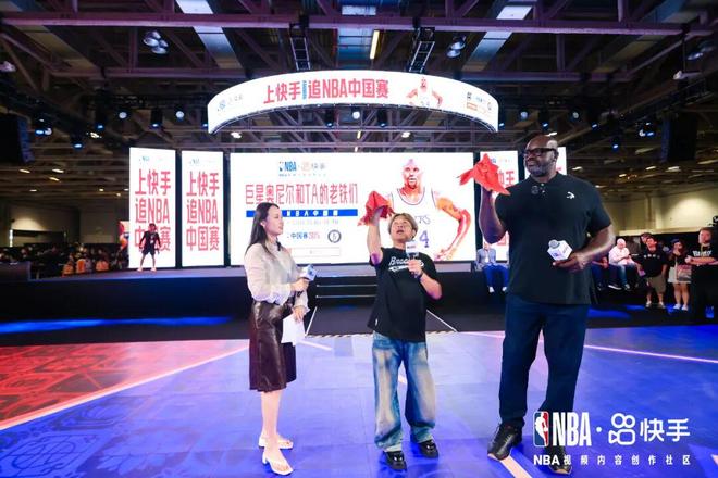 这几天的体育焦点,属于时隔六年回归的 NBA 中国赛。在澳门威尼斯人金光综艺馆,球迷们在场馆内互相拍照,与不同的球队 logo 打卡合影,纪念这一历史时刻。姚明、奥尼尔、成龙与贝克汉姆等明星的现场助阵, NBA 中国赛俨然成为了一个社会性事件。这里不仅有比赛的激烈,还有文化、社交与记忆的再现。而面向亿万在线上「追 NBA 中国赛」的球迷而言,短视频则成了他们的观赛主阵地。作为NBA中国的战略合作伙伴,快手特邀NBA传奇中锋沙奎尔・奥尼尔( Shaquille O'Neal )在快手展台和粉丝互动 ,并在中国赛期间落地一些系列线上线下活动,让更多球迷更沉浸的感受中国赛的热情。10 月 11 日下午 3 点, NBA House 人潮涌动。球迷把快手展区围得水泄不通,正翘首期盼着惊喜的到来。随着一声低沉而温暖的「 hello ,你好」划破了喧闹,奥尼尔出现在展台中央,一下子把所有人的注意力吸引过去。在现场,不少粉丝们把手机高举,有的小孩牵着父母的手钻到最前排,只为和偶像的距离再近一点。空气中弥漫着热切、期待,还有体育迷与偶像首次面对面的那种激动与惊喜。而奥尼尔打招呼的人群中,也包括直播间的所有人,快手的直播镜头追着他,弹幕和观众数开始不断增多。在活动现场,奥尼尔俨然是一位「中国通」,他与喜剧艺人宋小宝比扣篮,体验二人转手绢,学说东北、看模仿扣篮,把美国篮球和中国民间喜剧联系在一起,是 NBA 少有的反差幽默画面。热爱中国功夫的奥尼尔更是过了把瘾,与祁家通背拳第九代传承人赵鸿刚切磋,体验了一把「结结实实」的手切板砖,并且挑战成功,这种意外让奥尼尔惊叹不已。不仅如此,奥尼尔还为现场球迷签名、满足生日愿望;担当评委,为快手达人肖他、王秋楠、徐通的篮球动作打分;在快手的「奥尼尔生涯展示区」,与球迷们一起诉说回忆 ……「中国就像我的第二个家,能和这里的球迷共同享受赛事,我感到非常开心。」奥尼尔真切的表示。而一位小球迷的生日愿望引发全场温情,当得知孩子希望与自己合影时,奥尼尔主动俯身拥抱小球迷,不仅共同拍摄纪念照,还在球衣上签下了自己的名字。这种亲切感,带来了内容协作的深度。 2023 年奥尼尔入驻快手后,持续分享练歌、弹钢琴、篮球训练等日常内容,并参与元宵节猜灯谜等快手平台官方活动,拉近与中国粉丝距离。两年前的杭州亚运会,奥尼尔更是作为快手《冠军观赛团》嘉宾出现在中国女篮比赛的赛场边,并与他的「老朋友」姚明拥抱,让无数球迷「姚鲨合体」的记忆翻涌。短短一个小时时间内,直播观看人数 1700 万,本场直播无疑成为 NBA 中国赛期间备受瞩目的活动之一。在纷纷扰扰的 NBA House ,快手展区门外排起了长长的队伍,而进入这里第一个明显的感受,便是独属于快手的沉浸式的空间 —— 这里有NBA选秀的舞台、训练营的摸高挑战、球队更衣室,球迷们能够在此「开启职业生涯」。在快手打造的这个 NBA 空间中,以「 NBA职业球员生涯体验旅程」 为主题,打造沉浸式互动场景,让现场观众亲身感受 NBA 球员成长轨迹,给所有的有 NBA 梦想的球迷创造了一个「圆梦之地」。当球迷进入展区后,观众首先需从 30 支 NBA 球队中选择心仪主队,并贴上对应 Logo 贴纸,开启专属「 球员生涯 」 ;紧接着迎来反应力训练挑战, 8 颗篮球分布在四周, 10 秒内随机亮起,观众需快速拍打发光篮球完成测试,成功通关后可进入 NBA 选秀舞台。在此环节, 观众输入姓名、家乡及偶像球星信息后生成专属BGM,球迷可以在选秀舞台上用最酷的姿势享受这一时刻,并通过现场报纸机拍照 ,「 快手体育前线报 」 将即时打印照片,定格这一重要瞬间,成为球迷的专属记忆。奥尼尔现场体验了展区的玩法,在选秀场景前,他回忆道:「 那是我人生中最重要的时刻之一,开启了我的NBA生涯。 」正式开启「NBA职业生涯」 体验后,快手也为球迷创造了一个 NBA 球员的成长轨迹。摸高扣篮挑战成为热门环节,展区内设置红外线感应摸高器,实时记录并更新摸高榜单 TOP 排名,每个人都可以把自己的记录登记上榜;而在「 退役环节 」 ,快手复刻 NBA 球员更衣室场景,观众可坐在球员专属座椅上拍摄留念,感受职业球员赛后放松的专属空间; 体验尾声,观众还能通过快手可灵AI生成 个人专属球星卡,并现场打印制作,将此次NBA生 涯体验的回忆永久珍藏。在选秀舞台上,有一对站在光影里的父子,小男孩手里攥着一只小篮球,父亲微笑着把他举得更高,照片定格这一温馨的瞬间。或许对于两代人而言,那颗球都是梦想的缩影,而简单的一次合影,悄悄把遥不可及的偶像世界,与家常日子拉近了一步。此外,「快手跨界舞台」同样渗透到了更多球迷当中。比如被很多球迷追捧的「真假大魔王台球挑战赛」,由于德陆、周琦、平常心、孟铎四人混战,以直播的形式展现热闹的「哥们局」,以台球为舞台将几位大男孩最真实的一面。而在另一边的「澳门 66 分大战」,阵容由军哥、肖他、徐通、王秋男、唐日辉、小虎篮球说等人组成,同时加入了三位素人球员组队,保留了篮球最快乐的内核: 不论是职业选手、网络红人,还是普通爱好者,都能在这片场地找到属于自己的角色。在快手,篮球舞台可以更广阔,不单是跨界玩法,追 NBA 中国赛的场景也从赛场延伸到展馆、街头、直播间,这展现出了一个把国际体育 IP 嵌入本土文化与社交生态的长期路径。NBA中国赛,其