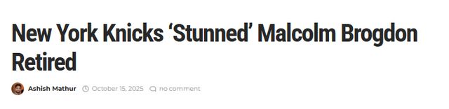北京时间10月16日,32岁的布罗格登突然通过ESPN发布声明,决定退役。据悉,布罗格登此前就一直在考虑退役事宜,他也是尼克斯队除核心后卫布伦森外,唯一一位纯正的控卫人选。他已于当天将退役决定告知球队管理层。一位消息人士透露,尼克斯对此事感到震惊。