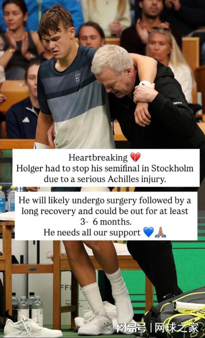 在现场,鲁内受伤后哭着告诉理疗师,自己听到了跟腱断裂的声音。赛后,经过医疗检查确认,鲁内果然是跟腱断裂,需要手术,康复期至少要六个月。如果恢复状况不佳,则可能需要一年的时间才能重返赛场。而且由于是对网球运动员来说至关重要的跟腱出现断裂,即使长好了也很难保证跟腱的牵拉强度完全恢复,还有再次断裂的风险。这样一来,丹麦一哥的职业生涯将蒙上厚厚的阴影,他夺得大满贯的壮志也恐将梦碎。