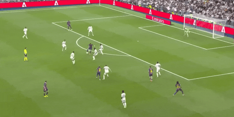 亚马尔前场强行突破,随后皮球被解围出底线