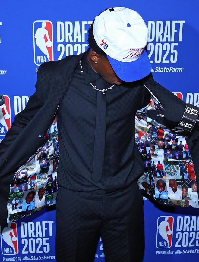 选秀时,埃奇库姆还穿了一件特别定制的西装,里面贴满了自己和家人,还有和‘糖’教练的照片。当他把头低下来,眼泪夺眶而出。