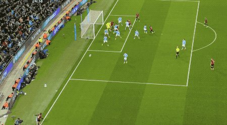 第25分钟,伯恩茅斯开出角球,布鲁克斯先是拉拽多纳鲁马,在多纳鲁马出击时松手,造成多纳鲁马的击打失误,亚当斯捡漏破门。曼城1-1伯恩茅斯。