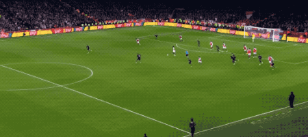 第30分钟,萨利巴抢断的同时一脚出球,埃泽的停球相当精彩,但最后的推射稍显离谱,自己都吐舌头有些尴尬。
