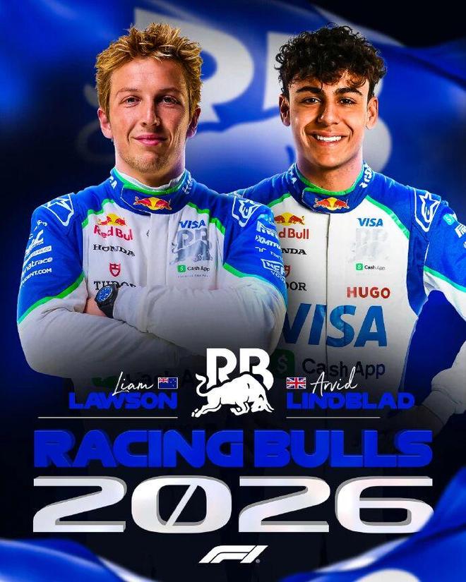 就在北京时间12月2日晚间,红牛车队官方宣布:哈贾尔2026赛季将代表红牛车队出战!与此同时红牛二队也在同一时间官宣:林德布拉德将在2026赛季与劳森一起代表红牛二队登场!至此,2026赛季F1所有车手席位都已经确认!